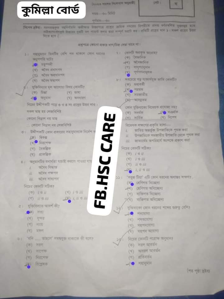 এইচএসসি কুমিল্লা বোর্ড যুক্তিবিদ্যা পরীক্ষার MCQ প্রশ্নগুলো সাধারণত বেশ চ্যালেঞ্জিং হয়। তাই শিক্ষার্থীদের ভালোভাবে প্রস্তুতি নেওয়া জরুরি।
