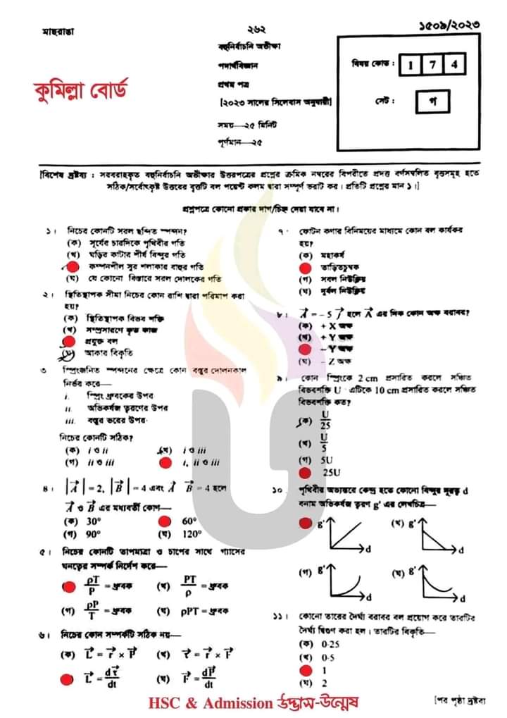 এইচএসসি কুমিল্লা বোর্ড পদার্থবিজ্ঞান ১ম পত্র বহুনির্বাচনি (MCQ) সমাধান ২০২৩ | এইচএসসি কুমিল্লা বোর্ড পদার্থবিজ্ঞান ১ম পত্র MCQ/নৈব্যক্তিক প্রশ্ন ও উত্তর ২০২৩ | HSC comilla Board Physics 1st paper MCQ Solution 2023